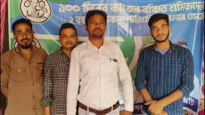 রাজনগর অঞ্চল তৃণমূল কংগ্রেসের পক্ষ থেকে ১০০ দিনের কাজের বঞ্চিত শ্রমিকদের সহায়তা কেন্দ্র আয়োজিত হল রাজনগরে। কেন্দ্র সরকার ১০০ দিনের কাজের শ্রমিকদের বকেয়া টাকা দীর্ঘদিন ধরে আটকে রেখেছে। এর ফলে সমস্যায় পড়তে হয়েছে শ্রমিকদের। রাজ্য সরকার কেন্দ্রকে এ বিষয়ে বারবার আবেদন নিবেদন করলেও কোন ফল হয়নি। সম্প্রতি মুখ্যমন্ত্রী মমতা বন্দ্যোপাধ্যায় ঘোষণা করেছেন রাজ্য সরকার ১০০ দিনের শ্রমিকদের টাকা মেটাবে। এরই পরিপ্রেক্ষিতে অন্যান্য জায়গার পাশাপাশি রাজনগরেও একটি সহায়তা কেন্দ্র করা হলো মঙ্গলবার। এলাকার যেসব শ্রমিকেরা ১০০ দিনের কাজ করেছেন, অথচ মজুরি পাননি, তাদের নথিপত্র জমা নেওয়া এবং আবেদন পত্র পূরণের কাজ করা হলো। আজকের এই সহায়তা কেন্দ্রে উপস্থিত ছিলেন তৃণমূল নেতা পরিমল সাহা, গাফ্ফার খান, গোপাল ধীবর, ধ্রুব কুমার ধীবর, আদিত্য সাহা সহ অন্যান্যরা।