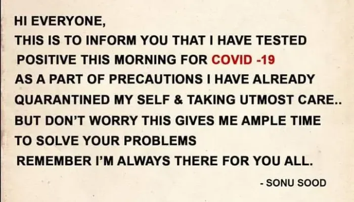 নতুন গতি প্রতিবেদক : করোনার থাবা ক্রমশই চওড়া হচ্ছে বলিউডেও। এবার করোনা আক্রান্ত হলেন খোদ অভিনেতা সোনু সুদ। গতবছর করোনার সময় লকডাউনের সংকটকাল থেকে তিনি কার্যত পরিত্রাতার ভূমিকা পালন করে চলেছেন। পরিযায়ী শ্রমিক থেকে শুরু করে বিভিন্ন মানুষদের বিপদে পাশে দাঁড়িয়েছেন তিনি। সোনুর নামে তৈরি হয়েছে মূর্তি, মন্দির। কিন্তু নিজেই করোনার গ্রাস থেকে বাঁচতে পারলেন না। সোশ্যাল মিডিয়ায় নিজেই করোনা আক্রান্ত হওয়ার খবর জানিয়েছেন তিনি।