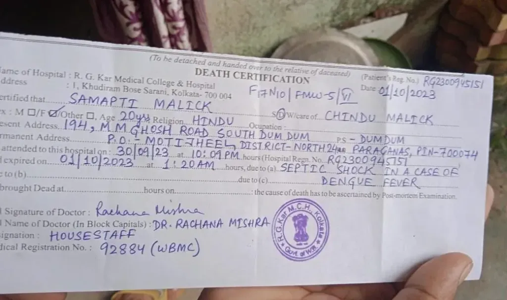 ফের দক্ষিণ দমদমে ডেঙ্গুতে আক্রান্ত হয়ে মৃত্যু হল এক তরুণীর