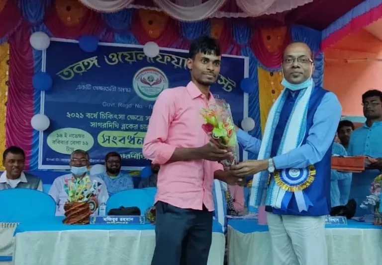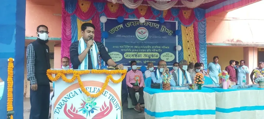 ১৪ নভেম্বর রবিবার সাগরদিঘির অন্যতম নবগঠিত ‘তরঙ্গ ওয়েলফেয়ার ট্রাস্ট ‘এর পক্ষ থেকে মেডিক্যাল প্রবেশিকা পরীক্ষায় উত্তীর্ণদের ফুলের তোড়া, উত্তরীয়,ব্যাচ,মিষ্টির ভাড়, মোমেন্ট, স্টেথোস্কোপ, দিয়ে সংবর্ধনা জানানো হয়।