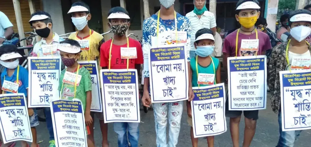 নিজস্ব সংবাদদাতা, খড়্গপুর: হিরোশিমা-নাগাসাকি ও যুদ্ধ বিরোধী দিবস উদযাপন কমিটির পক্ষ থেকে সোমবার ৯ অগাস্ট, খড়্গপুরের ডিভিসি জগন্নাথ মন্দির সংলগ্ন ময়দানে যুদ্ধ বিরোধী দিবস পালিত হল৷ এই কর্মসূচীতে কচিকাঁচাসহ এলাকার নাগরিকদের উপস্থিতি ছিল চোখে পড়ার মতো৷