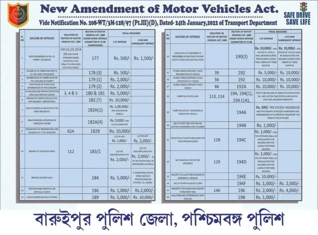 ই চালান ট্রেনিং ও পরিবহণ দফতরের দ্বারা প্রবর্তিত বর্ধিত ফাইন বিষয়ে সচেতনতা শিবির