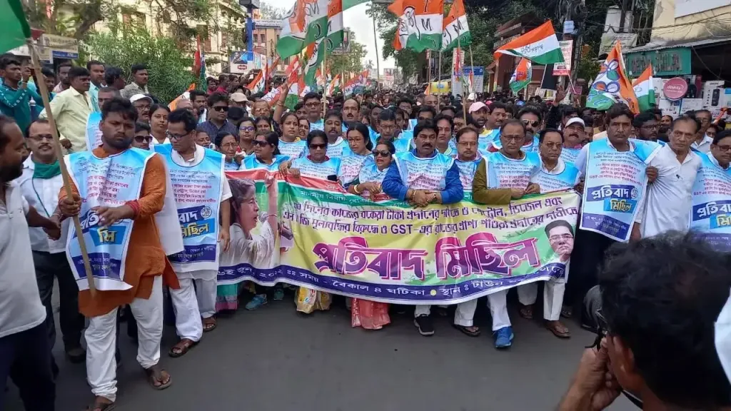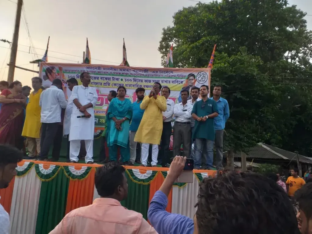 বর্ধমান দক্ষিনে বিধায়ক খোকন দাসের নেতৃত্বে মিছিল। বর্ধমান দক্ষিণ বিধানসভা কেন্দ্রের বিধায়ক খোকন দাসের নেতৃত্বে বর্ধমান শহরে একই দাবিতে মহা মিছিল হয়। বর্ধমান টাউন হল থেকে এই মিছিল শুরু হয়ে শহরের উত্তরপত্র পর্যন্ত যায়। শেষে একটি জনসভায় ভাষণ দেন খোকন দাস। এই প্রতিবেদককে খোকন দাস জানান, বর্ধমান শহরের প্রত্যেকটা ওয়ার্ড থেকে তৃণমূল কর্মী, সাধারণ মানুষ এবং একশ দিনে কাজের বঞ্চিত শ্রমিকরা এই মিছিলে অংশগ্রহণ করেন। উপস্থিত ছিলেন প্রাক্তন বিধায়ক ও বর্ধমান জেলা পরিষদের মেন্টর উজ্জ্বল প্রামানিক, জেলা তৃণমূল কংগ্রেসের সাধারণ সম্পাদক নিহারেন্দ্র আদিত্য, বর্ধমান পৌরসভার চেয়ারম্যান পরেশ সরকার প্রমুখ।