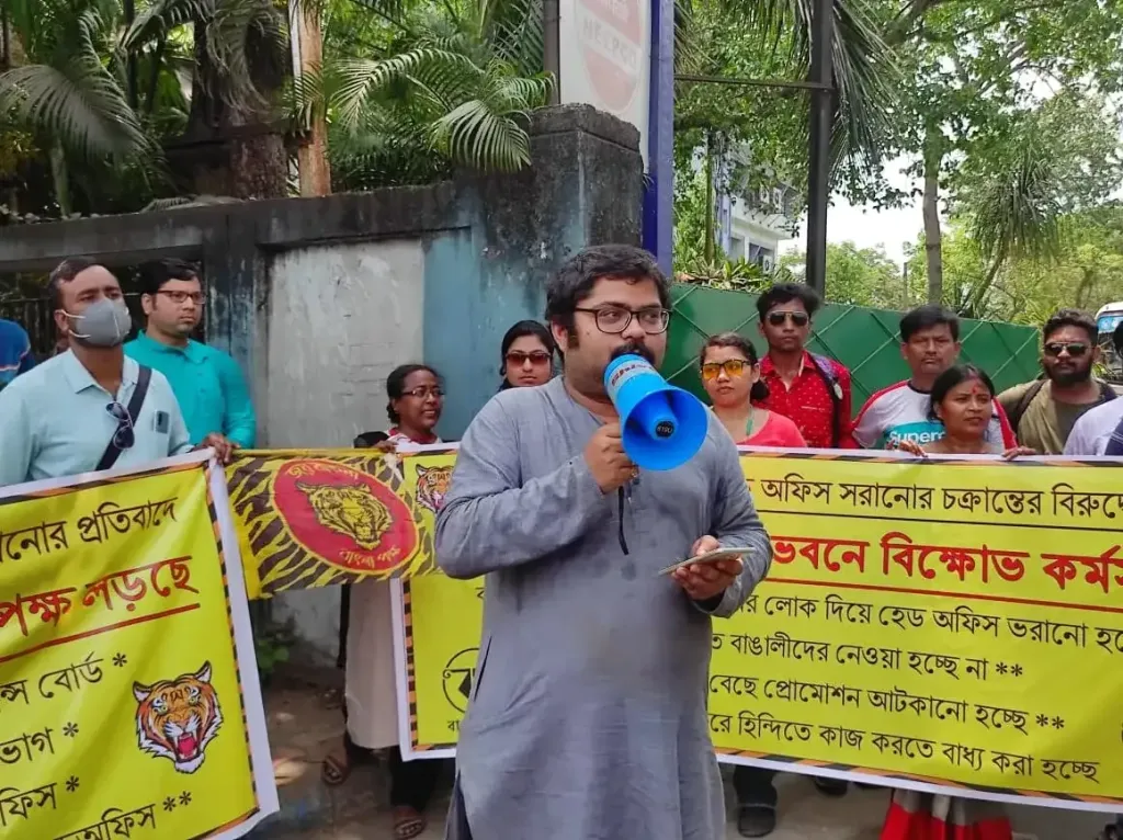 ৪. হিন্দিতে কাজে জোর দেওয়া হচ্ছে, বাধ্যতামূলক করা হচ্ছে। হিন্দিতে কাজ করলে সুযোগ সুবিধা বেশি। অফিসের সমস্ত বোর্ড শুধুমাত্র হিন্দিতে আছে।
