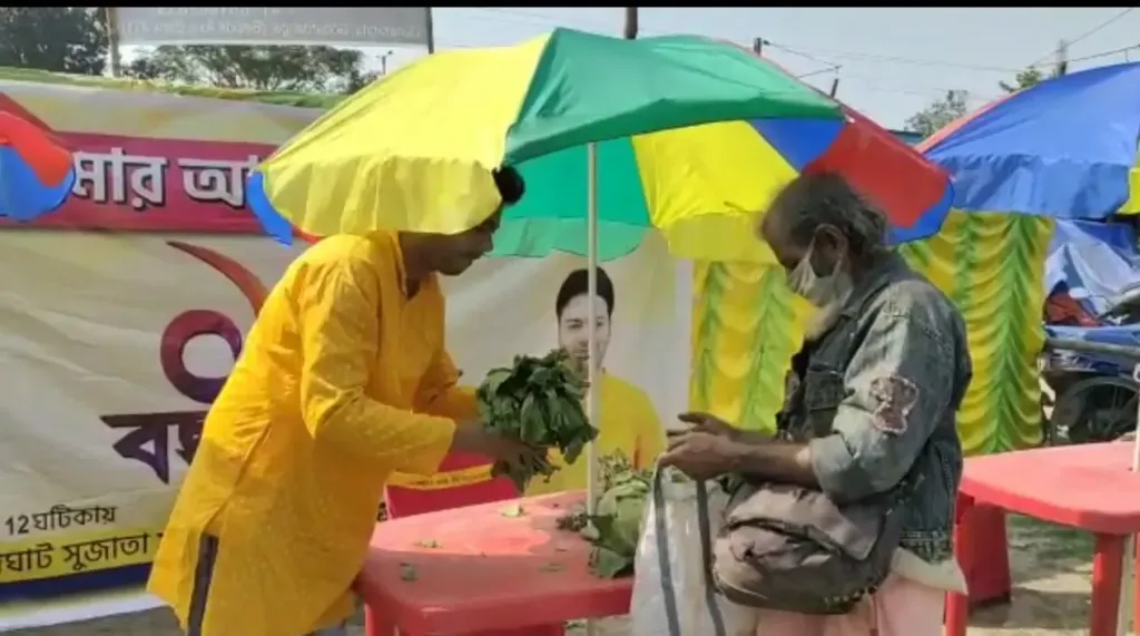 মহঃ মফিজুর রহমান , উত্তর ২৪ পরগণা : আজ উত্তর ২৪ পরগণার গোবরডাঙ্গায় সেচ্ছাসেবী সংগঠন ‘আমার আশা ফাউন্ডেশন’ এর উদ্যোগে চতুর্থ দিনের “বিনামূল্যে বাজার” অনুষ্ঠিত হয় । এই কর্মসূচির মাধ্যমে এলাকার শতাধিক অসহায় মানুষের হাতে সম্পূর্ণ বিনামূল্যে খাদ্য সামগ্রীসহ নতুন বস্ত্র তুলে দেন সংগঠনের কর্মকর্তারা । গোবরডাঙ্গা ব্লুস্টার ক্লাব মাঠে অনুষ্ঠিত হয় এই ” বিনামূল্যে বাজার ” ।