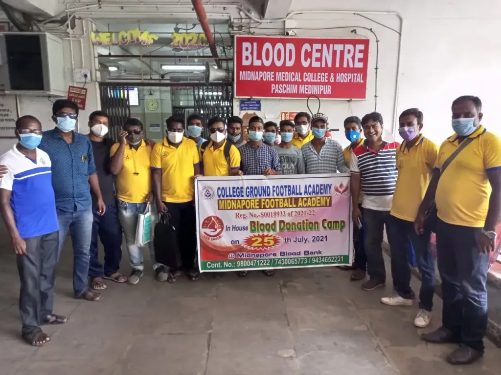 নিজস্ব সংবাদদাতা, মেদিনীপুর: রবিবার কলেজ গ্রাউন্ড ফুটবল এ‍কাডেমির উদ্যোগে, মেদিনীপুর ম‍েডিক‍্যাল কলেজ হাসপাতালের ব্লাড ব‍্যাঙ্কে অনুষ্ঠিত হলো একটি ইন হাউস রক্তদান শিবির। এই শিবিরে দুজন মহিলা সহ মোট ৩১ জন রক্তদাতা রক্তদান করেন। এরমধ্যে প্রথমবারের জন্য রক্তদান ৯ জন রক্তদান করেন ।কলেজ গ্রাউন্ড ফুটবল একাডেমির সভাপতি মহম্মদ শামীমের মা জাহানারা বেগম ৫৫ বছর বয়সে এই শিবিরে রক্তদান করেন। ফুটবল একাডেমির সদস্য, একাডেমির ছাত্র ও একাডেমীর শুভানুধ্যায়ী ও পরিচিতরা রক্তদান করেন। প্রত‍্যেক রক্তদাতার হাতে একাডেমির পক্ষ থেকে একটি করে চারাগাছ তুলে দেওয়া হয়।