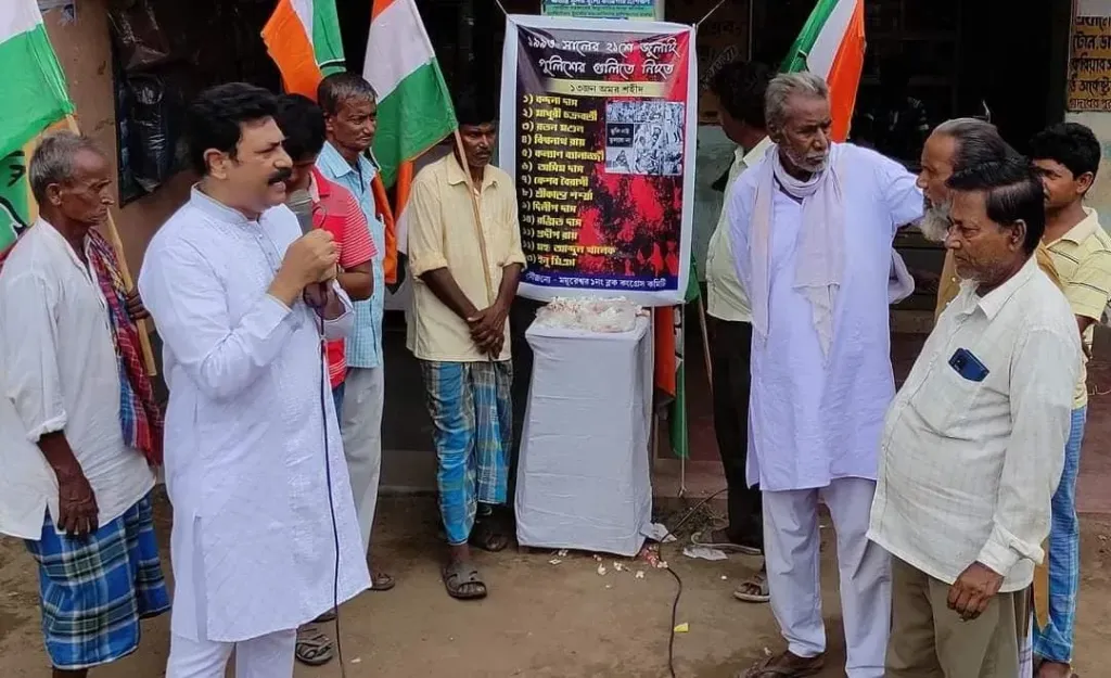 বীরভূম জেলা জাতীয় কংগ্রেসের পক্ষ থেকে ময়ূরেশ্বর বিধানসভার গদাধরপুর বাজারে শহীদদের প্রতি শ্রদ্ধার্ঘ্য নিবেদন করা হয় এক অনুষ্ঠানের মাধ্যমে। উল্লেখ্য,সেই দিনটি ছিল ১৯৯৩ সালের ২১ জুলাই যুব কংগ্রেসের নেতৃত্বে No Identity, No Vote সেই দাবীকে সামনে রেখে সেদিন মহাকরণ অভিযানের সময় কলকাতা ধর্মতলায় তৎকালীন বামফ্রন্ট সরকারের পুলিশের হাতে ১৩ জন যুব কংগ্রেস কর্মীদের গুলি করে হত্যা করা হয়েছিল। জাতীয় কংগ্রেসের পক্ষ থেকে আজ সেই সমস্ত অমর শহীদদের প্রতি পুষ্পার্ঘ্য নিবেদন করে শ্রদ্ধার্ঘ্য নিবেদন করেন। উপস্থিত ছিলেন বীরভূম জেলা কংগ্রেসের কার্যকরী সভাপতি সৈয়দ কাসাফদ্দোজা, ময়ূরেশ্বর – ১ নম্বর ব্লক কংগ্রেস সভাপতি পার্বতী কুমার চৌধুরী, ময়ূরেশ্বর – ২ নং ব্লক কংগ্রেস সভাপতি জাসমির খান, জেলা কংগ্রেস সদস্য সেখ কবির হোসেন প্রমূখ জাতীয় কংগ্রেসের কর্মী ও নেতৃবৃন্দ। জেলা কার্যকরী সভাপতি সৈয়দ কাসাফদ্দোজা তার বক্তব্যে ১৯৯৩ সালের ২১ শে জুলাই এ ঘটে যাওয়া সেই নারকীয় হত্যাকাণ্ডের কথা তথা দলীয় কর্মীদের প্রতি পুলিশের নির্বিচারে গুলিচালনার কথা তুলে ধরেন। আজকের স্মরণসভা থেকে সেই ১৩ জন শহীদদের প্রতি গভীর শ্রদ্ধাঞ্জলি নিবেদনের পাশাপাশি দোষীদের ফাঁসির দাবি জানানো হয় সংগঠনের পক্ষ থেকে।
