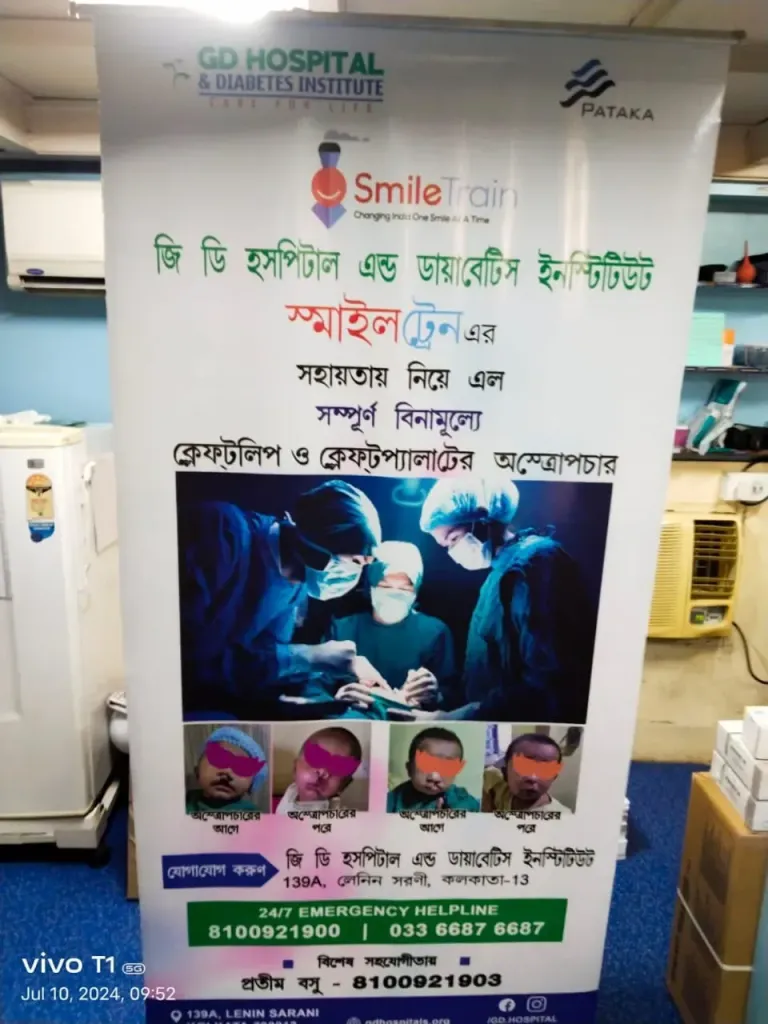 ফারুক আহমেদ : পশ্চিমবাংলার শিক্ষা ও স্বাস্থ্য ক্ষেত্রে পতাকা শিল্পগোষ্ঠী ও জনাব মোস্তাক হোসেন একটি সুপরিচিত ও গুরুত্বপূর্ণ নাম। তাঁর পৃষ্ঠপোষকতায় জিডি দুই দিকেই সমান তালে ভূমিকা রাখছে। স্বাস্থ্যসেবায় ভরসার স্থল হয়ে উঠেছে জিডি হাসপাতাল। কম খরচে উন্নত চিকিৎসার সুবিধা পেতে বাংলার গ্রামগঞ্জ ও শহরের মানুষ ভিড় জমান এখানে। ২০২১ সাল থেকে জিডি হাসপাতাল অ্যান্ড ডায়াবেটিস ইনস্টিটিউট কলকাতা সহ পশ্চিমবাংলার অনেক শিশুর স্মাইল ট্রেন প্রকল্পের সহায়তায় ‘ক্লেফ্ট লিপ’ ও ‘ক্লেফ্ট প্যালেট’ অপারেশন করছে সম্পূর্ণ বিনামূল্যে। ডা. এস. এ. ফয়জাল (প্লাস্টিক সার্জন)-এর নেতৃত্বে এই প্রকল্প শুরু হয়েছে, যিনি প্রতি সপ্তাহে জিডি হাসপাতালে এই অপারেশন করেন। এখন পিতা-মাতারা যাঁদের বাচ্চাদের ‘ক্লেফ্ট লিপ’ এবং বয়স ৩ মাস ও তার অধিক অথবা যাঁদের বাচ্চাদের ‘ক্লেফ্ট প্যালেট’ আছে এবং বয়স ৯ মাস ও তার বেশি তাঁরা চিকিৎসার জন্যে জিডি হাসপাতালে আনতে পারেন অপারেশনের জন্যে।