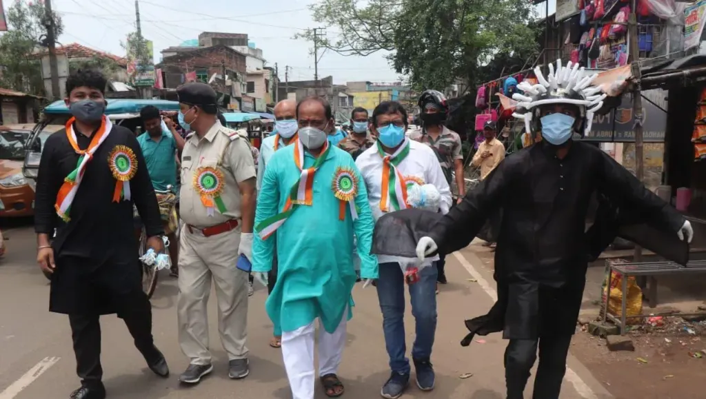 নিজস্ব সংবাদদাতা, নন্দকুমার, পূর্ব মেদিনীপুর: করোনার তৃতীয় ঢেউ আসার আগেই সাধারণ মানুষকে সচেতন করতে রাস্তায় নামলেন নন্দকুমার থিয়েটার গ্রুপের সভাপতি সাবিনা পারভীন ও সম্পাদক সেখ আমেদুল্লা (রকি) ও অন্যান্য সদস্য-সদস্যারা এবং শুভানুধ্যায়ীরা। শুক্রবার নন্দকুমার বাজারে পথ চলতি মানুষ থেকে শুরু করে বিভিন্ন গাড়ির চালকদের মাস্ক, স্যানিটাইজার ও সাবান বিতরণ করা হয়। পাশাপাশি কোভিভ সচেতনতা বিষয়ক কার্টুন ও পথনাটক উপস্থাপন করা হয় সংস্থার পক্ষ থেকে। করোনা মহামারির কারনে জনজীবন বিপর্যস্ত। দীর্ঘ প্রায় দেড় বছর প্রায় স্তব্ধ হয়ে রয়েছে সামাজিক মেলবন্ধন। করোনার প্রথম ঢেউ-এর মানুষ কিছুটা স্বাভাবিক হতে শুরু করতে না করতেই দ্বিতীয় ঢেউ এর প্রভাব শুরু হয়ে যায়। আবার আসতে চলেছে তৃতীয় ঢেউ। অনেক মানুষ কর্মহীন হয়ে পড়েছে। দিন মজুরি করে দিন গুজরান করে এমন মানুষ সব থেকে অসহায় হয়ে পড়েছে। আর এই তৃতীয় ঢেউ এর ফলে শিশুদের উপর প্রভাব বেশি পড়তে পারে বলে বিশেষজ্ঞদের অনুমান। তাই মানুষদের আরো বেশি করে সচেতন করতে তাঁরা এই প্রয়াস গ্রহণ করেছেন বলে জানান,সংস্থার কর্ণধার সেখ আমেদুল্লা । তিনি আরো জানান,করোনা মহামারির সময় প্রথম থেকেই তাঁদের নন্দকুমার থিয়েটার গ্রুপের সদস্য- সদস্যারা অসহায় মানুষদের পাশে ত্রাণ সামগ্রী নিয়ে হাজির হয়েছে এবং কোভিড আক্রান্ত মানুষদের বাড়িতে বিভিন্ন পরিষেবা পৌঁছে দিয়েছে।