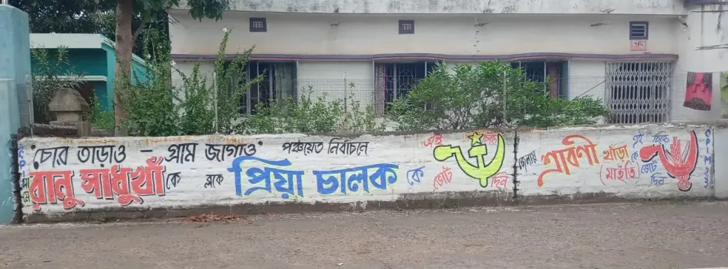 নিজস্ব সংবাদদাতা : গ্রাম পঞ্চায়েত নির্বাচন ঘিরে যুযুধান রাজনৈতিক দল গুলো যে যার নিজের মতো করে প্রচার চালাচ্ছে জোর কদমে। মেদিনীপুর শহর সংলগ্ন শিরোমণি গ্রাম পঞ্চায়েত এলাকায়তেও শুরু হয়ে গেছে প্রচার। এই এলাকার সিপিআইএম সহ বামফ্রন্টের প্রার্থীরা বাড়ি বাড়ি প্রচারের উপর বিশেষ জোর দিচ্ছেন। পাশাপাশি দেওয়াও লিখনের কাজও প্রায় শেষের পথে।