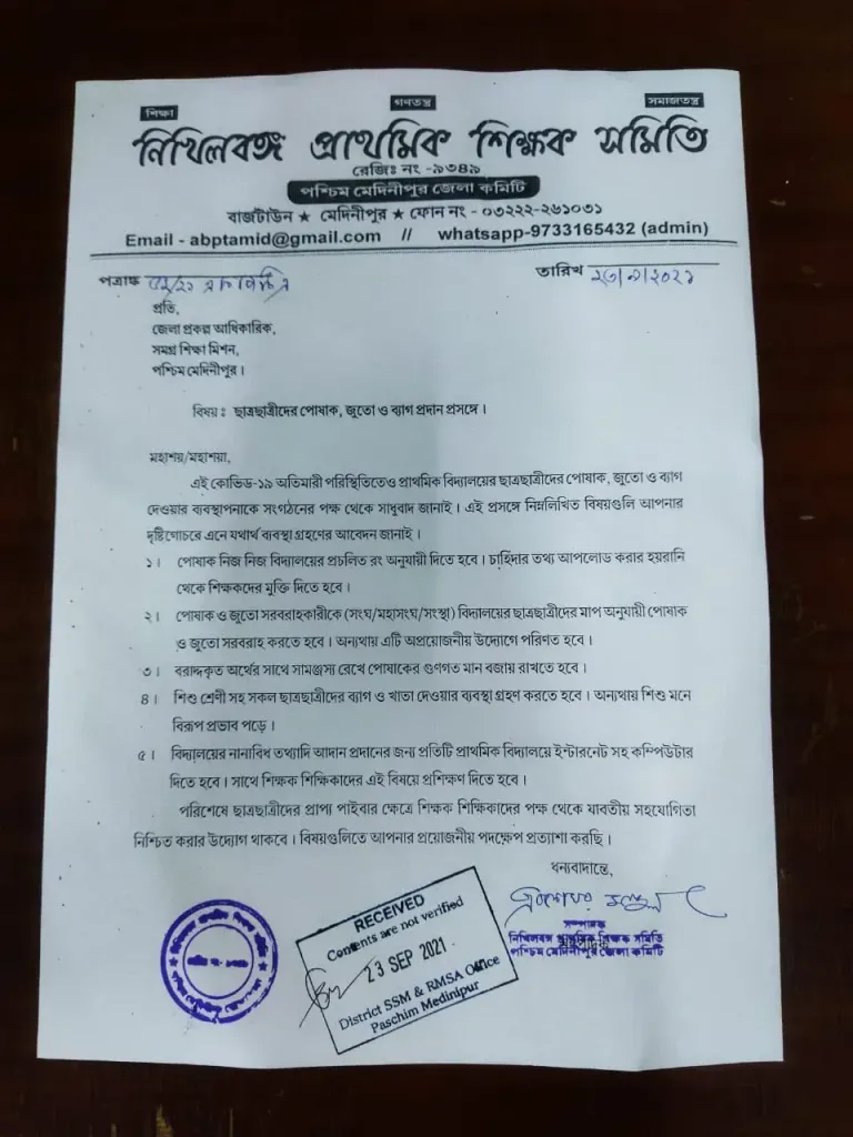 এক শিক্ষক বিশিষ্ট স্কুলগুলোকে শ্রেণীভিত্তিক শিক্ষক নিয়োগের দাবি,অবসর প্রাপ্ত শিক্ষকদের সমস্ত ধরনের বকেয়া মিটিয়ে দেওয়ার দাবী সহ অন্যান্য দাবি নিয়ে আজকের ডেপুটেশন বলে জানান নিখিল বঙ্গ প্রাথমিক শিক্ষক সমিতির পশ্চিম মেদিনীপুর জেলা সম্পাদক কম: ধ্রুবশেখর মন্ডল।