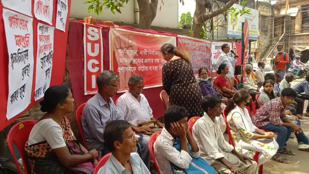 সেখ রিয়াজুদ্দিন,বীরভূম: রামপুরহাটের বগটুই গ্রামে সম্প্রতি যে বর্বর, নারকীয় ঘটনা সংঘটিত হয়েছে তাতে সমগ্র দেশের মানুষ শিহরিত হয়েছেন।এই ভয়াবহতার বিরুদ্ধে প্রকৃত অপরাধীদের গ্রেফতার ও কঠোর শাস্তি, মৃতদের পরিবারকে উপযুক্ত ক্ষতিপূরণ, আহতদের সুচিকিৎসা, প্রাণের তাগিদে যারা বিভিন্ন গ্রামে চলে যেতে বাধ্য বা আশ্রয়হীন হয়ে পড়েছেন, তাদের নিরাপদ পরিবেশ সৃষ্টি করে গ্রামে ফিরিয়ে আনা। প্রশাসনের ওপর সাধারণ মানুষের আস্থা ফিরিয়ে আনার জন্য প্রয়োজনীয় পদক্ষেপের দাবিতে বীরভূম জেলা এস ইউ সি আই কমিউনিস্ট পার্টির পক্ষ থেকে সিউড়িতে জেলাশাসকের দপ্তরের সামনে অবস্থান বিক্ষোভ প্রদর্শন করা হয়।পরে সংগঠনের।