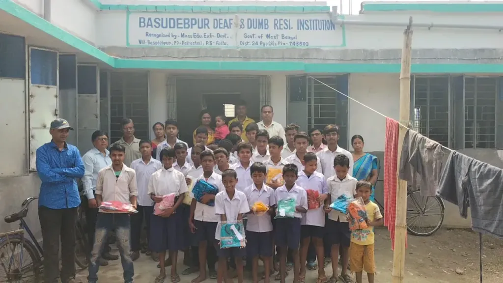 বাইজিদ মণ্ডল, ডায়মন্ড হারবার- স্বেচ্ছাসেবী সংগঠন বারুইপুর এর স্নেহ এর উদ্যোগে শিশু দিবসের প্রাক্কালে ফলতা বাসুদেব পুর মুক ও বধির অবৈতনিক শিক্ষা প্রতিষ্ঠানে প্রায় ৫০ জন মুক ও বধির শিশুদের হাতে তুলে দেওয়া হলো নতুন বস্ত্র। জানাজায় যে, এই মহতী উদ্যোগে সামিল ছিলেন বিশিষ্ট চিকিৎসক ও সমাজসেবী ডাঃ আকবর হোসেন মন্ডল। তিনি সব শিশুদের স্বাস্থ্যের খোঁজ খবর নেন ও তাদের ওষুধের ব্যবস্থা করে দেওয়ার সাথে মাসে একবার হলেও স্বাস্থ্য পরীক্ষা করার আশ্বাস দেন। স্নেহ এর কর্ণধার পায়েল ব্যানার্জী আজকের এই মুক ও বধির শিশুদের মধ্যেই বস্ত্র বিতরণ করে মানসিক শান্তি পেলাম এবং আগামীদিনে আরও বেশী করে পাশে থাকার ইচ্ছে প্রকাশ করেন। উপস্থিতি পরিমল মন্ডলও বললেন এই রকম উদ্যোগ প্রশংসনীয়।
