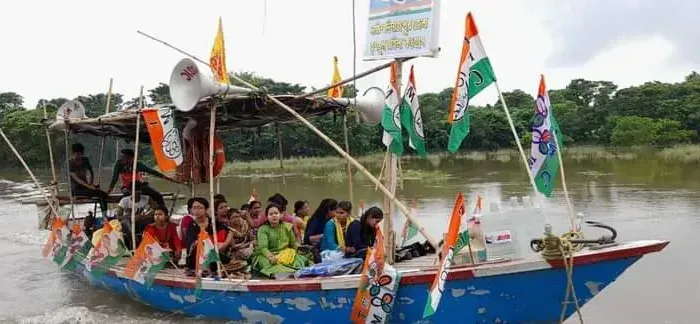 মূলত, তৃণমূল কংগ্রেসের তরফে সারা রাজ্যের পাশাপাশি দক্ষিণ দিনাজপুর জেলা জুড়ে আগামী ২১ জুলাই শহীদ দিবসকে সামনে রেখে কলকাতার ধর্মতলাতে তৃণমূল কর্মী সমর্থকদের জমায়েতের জন্য প্রচার অভিযান চালাচ্ছেন দলীয় নেতৃত্ব। সুদূর দক্ষিণ দিনাজপুর জেলাতেও জোর কদমে প্রচার অভিযান চালানো হচ্ছে। একুশে জুলাই সমাবেশকে সফল করতে জেলা নেতৃত্ব সহ তৃণমূলের কর্মী সমর্থকরা কোমর বেঁধে ময়দানে নেমে পড়েছে প্রচার অভিযানে।প্রসঙ্গত,জেলার সদর শহর বালুরঘাট শহরের দিয়ে বয়ে যাওয়া আত্রেয়ী নদীর দু-পাড়েও বহু মানুষের বসবাস। তাঁদের কথা মাথায় রেখে নদীপথে প্রচার অভিযান চালাল তৃণমূল মহিলা কংগ্রেসের জেলা নেতৃত্ব। বালুরঘাট থেকে প্রচার অভিযান শুরু হয়ে শেষ হয় পতিরামে। উল্লেখ্য, উত্তরবঙ্গ জুড়ে বৃষ্টির ফলে নদীর জল ফুলে ফেপে উঠেছে,নদীর জল অনেকটাই বেড়ে যাওয়ায় কোনওরকম অপ্রীতিকর ঘটনা এড়াতে তৃণমূলের তরফে উদ্ধারকারী বোটের ব্যবস্থা করা হয়। আগামী একুশে জুলাই কলকাতায় শহীদ দিবসের সমাবেশকে কেন্দ্র করে দিনাজপুর জেলার সদর শহর বালুরঘাটের আত্রেয়ী নদীপথে জেলা মহিলা তৃণমূল কংগ্রেসের এই অভিনব প্রচার অভিযানের ব্যাপক সাড়া পরবে বলে আশাবাদী মহিলা তৃণমূল কংগ্রেসের জেলা সভানেত্রী প্রদীপ্তা চক্রবর্তী।