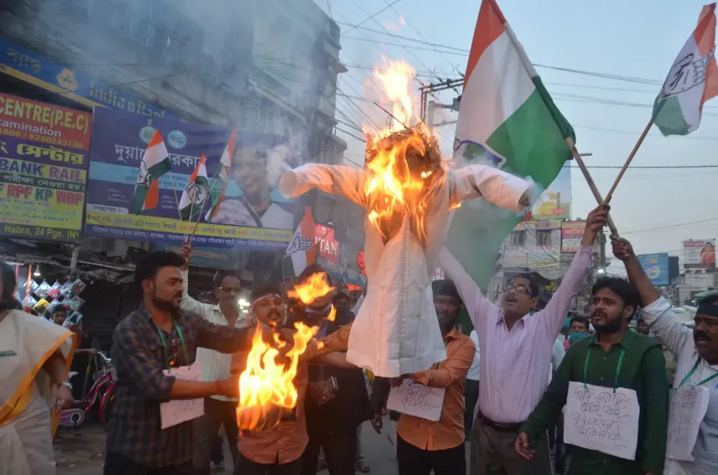 মোদী সরকারের আমলে ক্রমেই আকাশ ছোঁয়া পেট্রোল , ডিজেল ও রান্নার গ্যাসের দাম । পেট্রোপণ্যের এই আকাশ ছোঁয়া মূল্যবৃদ্ধিতে দিশেহারা সাধারণ মানুষ । এমতাবস্থায় আমজনতার পাশে দাঁড়িয়ে পেট্রোপণ্যের লাগাম ছাড়া মূল্যবৃদ্ধির অভিনব প্রতিবাদ জানালো হাবরা বিধানসভা যুব কংগ্রেস । শনিবার উত্তর ২৪ পরগণার অন্তর্গত হাবরা স্টেশন সংলগ্ন রাস্তায় মানুষ আর গরু মিলে পেট্রোলচালিত গাড়ি টেনে পেট্রোপণ্যের লাগামছাড়া মূল্যবৃদ্ধির অভিনব প্রতিবাদ জানানো হয় । পাশাপাশি বাংলার মুখ্যমন্ত্রী মমতা বন্দ্যোপাধ্যায়ের ‘চপ ভাজা’ ফতোয়ারও তীব্র প্রতিবাদ জানান কংগ্রেস নেতৃত্ব । এদিন হাবরায় রাস্তার উপর উনুন জ্বালিয়ে চপ ভেজে মমতার ‘চপ ভাজা’ তত্ত্বের প্রতীকী প্রতিবাদ জানানো হয় । শেষে রাস্তার উপর মোদীর কুশপুতুল জ্বালিয়ে কেন্দ্রের বিজেপি সরকারের বিরুদ্ধে বিক্ষোভ দেখান কংগ্রেসের কর্মী সমর্থকরা । বিক্ষোভ সমাবেশ থেকে শীঘ্রই পেট্রোল , ডিজেল ও রান্নার গ্যাসের দাম কমানোর দাবি জানান জেলা কংগ্রেসের লড়াকু নেত্রী তথা কংগ্রেসের এআইসিসি-র সদস্যা ইন্দ্রানী দত্ত চ্যাটার্জী , জেলা ছাত্র পরিষদের সভাপতি পরীক্ষিত নাগ , কংগ্রেসের লড়াকু যুব নেতা অরিজিৎ চক্রবর্তী , হাবরা বিধানসভা যুব কংগ্রেসের সহ সভাপতি সমিত দত্ত । এদিন বিক্ষোভ কর্মসূচিতে অন্যান্যদের মধ্যে উপস্থিত ছিলেন হাবরা শহর কংগ্রেস সভাপতি গোপাল ভট্টাচার্য্য , হাবরা বিধানসভা ছাত্র পরিষদের সভাপতি আকাশ বণিক , কংগ্রেস নেতা অর্ণব চ্যাটার্জী , যুব কংগ্রেস নেতা নীতিশ মজুমদার প্রমুখ ।
