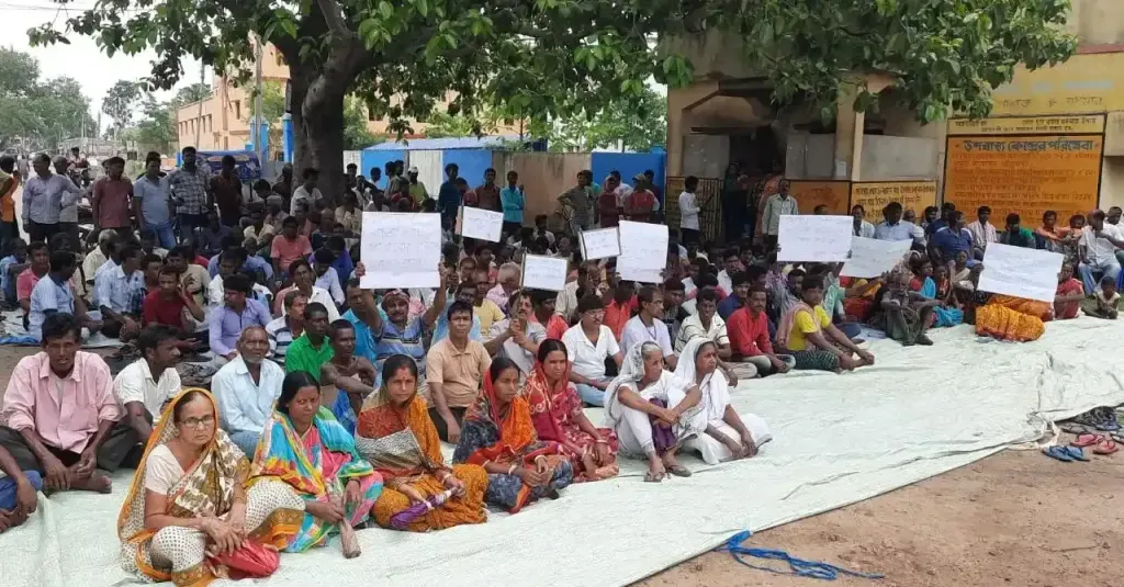 গলসির পারাজ গ্রাম পঞ্চায়েতের সামনে ধর্নায় গ্রামবাসীরা