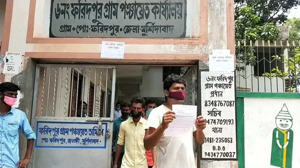 মুর্শিদাবাদের  ৬ নম্বর ফরিদপুর গ্রাম পঞ্চায়েতে এই প্রথম  পরিযায়ী শ্রমিক দের গনডেপুটেশন