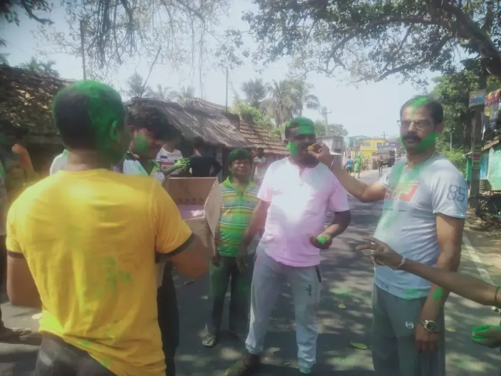 অন্যদিকে, শান্তি ও সম্প্রীতির আবহাওয়াকে স্মরণীয় করে রাখতে ডায়মন্ড হারবার আশাপূ্র তৃনমূল যুব কমিটির পক্ষ থেকে আশাপুর মোড়ে পথ চলতি মানুষদের হোলির আবির মাখিয়ে দিয়ে,মিষ্টি মুখ করিয়ে এই দিন পালন করলেন I উপস্থিত ছিলেন মাথুর অঞ্চলের কৃষাণ সেলের সভাপতি দেবব্রত খাড়া,বিশিষ্ঠ সমাজসেবী কার্তিক গাঙ্গুলি সহ মাথুর অঞ্চলের সকল তৃনমূল যুব কমিটির সদস্যরা I