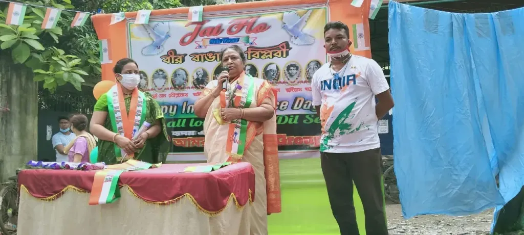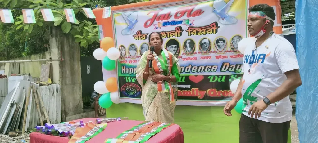 নতুন গতি ওয়েব ডেস্ক: আজকে আমাদের ভারতবর্ষের নানা প্রান্তে আজকে ৭৫তম স্বাধীনতা দিবস পালন করা হয়।আজকে স্বাধীনতা দিবসটা আর অনান্যদের মতন করে আমরা ফ্যামিলি ফেসবুক গ্রুপের পক্ষ থেকে সাতরাগাছির বি.আই.সি ময়দানে পালন করা হয়।এইদিন এই ফেসবুক গ্রুপের পক্ষ থেকে প্রথমে পতাকা উত্তোলন করা হয়।পতাকা উত্তোলন করেন উরি জঙ্গি হামলায় নিহত শহীদ গঙ্গাধর দৌলুই এর ছোট ভাই বরুন দৌলুই।এর পর ওই গ্রুপের পক্ষ থেকে সংবর্ধনা অনুষ্ঠান শুরু হয়।