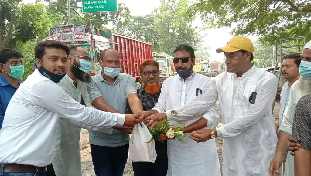 নতুন গতি, ওয়েব ডেস্ক : ৭৫ তম স্বাধীনতা দিবস উপলক্ষে সাম্প্রদায়িক সম্প্রীতি এবং ভাতৃত্বের বন্ধন অটুট রাখতে ভারত-বাংলাদেশ সীমান্তের জিরো পয়েন্টে গিয়ে বাংলাদেশের আমদানিকারক এবং বিজিবি দের শুভেচ্ছা এবং অভিনন্দন জানালেন মহদীপুর এক্সপোর্ট এসোসিয়েশনের সদস্যরা। রবিবার প্রথমে ভারত-বাংলাদেশ সীমান্তের মহদীপুর স্থলবন্দরে ভারতের জাতীয় পতাকা উত্তোলন এবং দেশাত্মবোধক বিভিন্ন অনুষ্ঠানের মধ্য দিয়ে ৭৫ তম স্বাধীনতা দিবস উদযাপন করা হয়। এরপর সীমান্তরক্ষী আধিকারিক, বি এস এফ এবং কাস্টম অফিসারদের স্বাধীনতা দিবস উপলক্ষে ফুলের স্তবক দিয়ে অভিনন্দন এবং শুভেচ্ছা জানানো হয়।