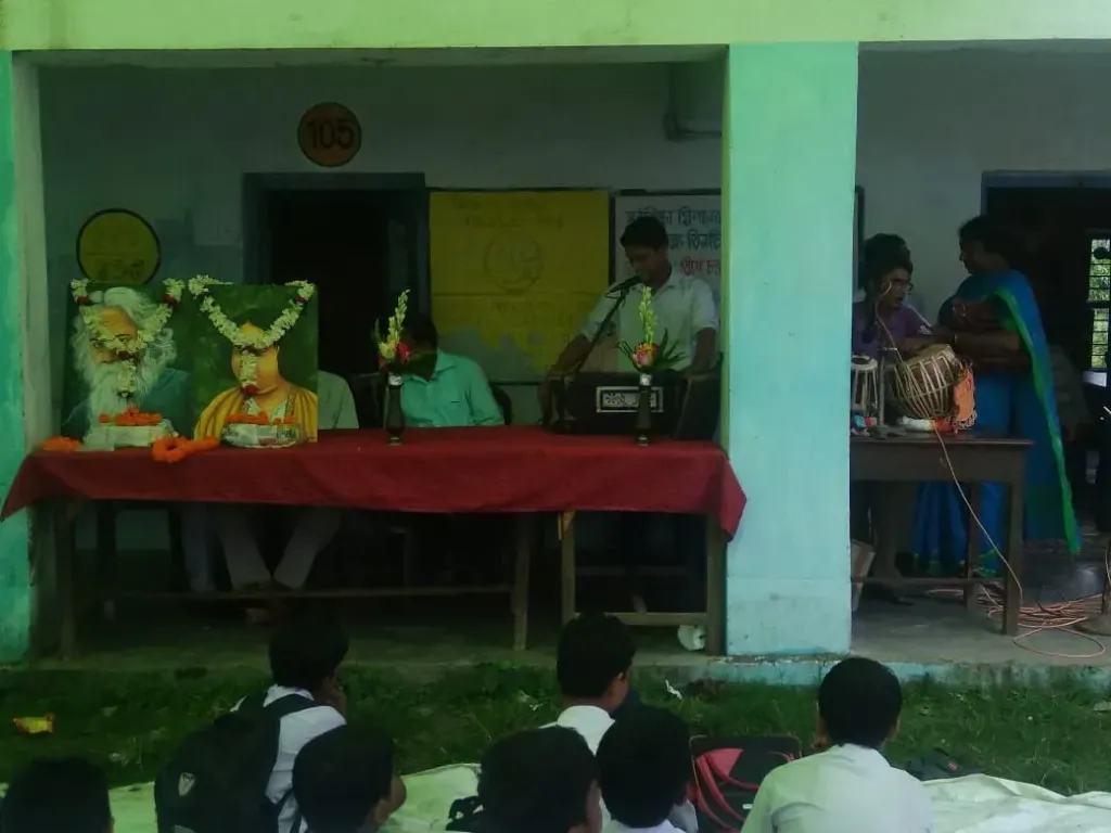 প্রতিবছরের ন্যায় এবারও দুই মহান কবিকে স্মরণ করতে বর্ষনমুখর দিনে মেঘমাথায় বিদ্যালয় প্রাঙ্গণে সমবেত হয়,শিক্ষক-শিক্ষিকা,ছাত্র-ছাত্রী এবং আমন্ত্রিত অতিথিবর্গ।বিদ্যালয়ের সভাপতি মহাবিষ্ণু শর্মামন্ডল,প্রধান-শিক্ষক মাননীয় সুকান্ত কর্মকার সহ উপস্থিত ছিলেন সহকারী প্রধান শিক্ষক রজতাভ মল্লিক,শিক্ষিকা সীমা লাহা,রানু ঘোষ আরও অনেকে। দুই কবির স্মরণে কবিতা-গান-ভাষনে অদ্ভুত সাংস্কৃতিক পরিবেশ তৈরী হয়ে যায়।”নদী আপন বেগে পাগল পারা” উদ্বোধনী সংগীত দিয়ে শুরু হয় এই কাঙ্খিত অনুষ্ঠান আর শেষ হয় প্রধান শিক্ষকের শিক্ষনীয় ভাষন দিয়ে।
