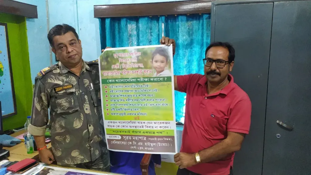 বিয়ের পিড়িতে বসার আগে “থ্যালাসেমিয়া টেস্ট” যাতে করে তার জন্য পাড়ায় পাড়ায় পোস্টার বিলোচ্ছেন জঙ্গল মহলের শিক্ষক সুব্রত