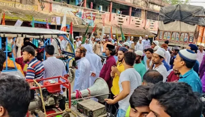 আজাহার উদ্দিন : বিশ্ব নবী হজরত মুহাম্মদ স,এর অবমাননার বিরুদ্ধে ও বিজেপির মুখপাত্র নূপুর শর্মার গ্রেফতার এর দাবীতে উত্তাল হয়ে উঠল হুগলির খানাকুল সহ বিস্তীর্ণ এলাকা।এদিন ঘোষপুর হাটতলা থেকে রামপ্রসাদ মোড় পর্যন্ত এক প্রতিবাদ মিছিল অনুষ্ঠিত হয়।এই মিছিলে সকলেই পা মেলান, স্লোগান ওঠে নূপুর শর্মার গ্রেফতার করতে হবে এবং কঠোর শাস্তির দাবী জানান, না হলে আগামী দিনে আরও বৃহত্তর আন্দোলনের হুঁশিয়ারি দেওয়া হয় ।হজরত মুহাম্মদ স, কে নিয়ে নূপুর শর্মা যে কুরুচিপুর্ন মন্তব্য করেছে তার ঢেউ সারা বিশ্বে আছড়ে পড়েছে।এই প্রতিবাদ মিছিল থেকে আওয়াজ ওঠে প্রধানমন্ত্রী নরেন্দ্র মোদী বিবৃতি দিন এবং নূপুর শর্মার গ্রেফতার করুক। এই ধিক্কার মিছিলে অংশ নেন মাওলানা ইয়াসিন আল হাবিবী,মাওলানা আমিরুল ইসলাম মাজহারী, মাওলানা কাজী মিরাজুল ইসলাম, আইনজীবী খন্দকার সঈদ উদ্দিন, জমিয়ত উলামার হিন্দের আজিজুল মল্লিক, সেখ হাসান, সেখ দাস্তগীর,কাজী মহিউদ্দিন,নিয়াজ, আলী,সহ স্থানীয় মসজিদের ইমাম মোয়াজ্জেম,মাদ্রাসার ছাত্র শিক্ষক সহ সকলেই এই শান্তিপূর্ণ প্রতিবাদ মিছিল করেন।প্রশাসনিক যথেষ্ট সাহায্য সহযোগিতা করেন।