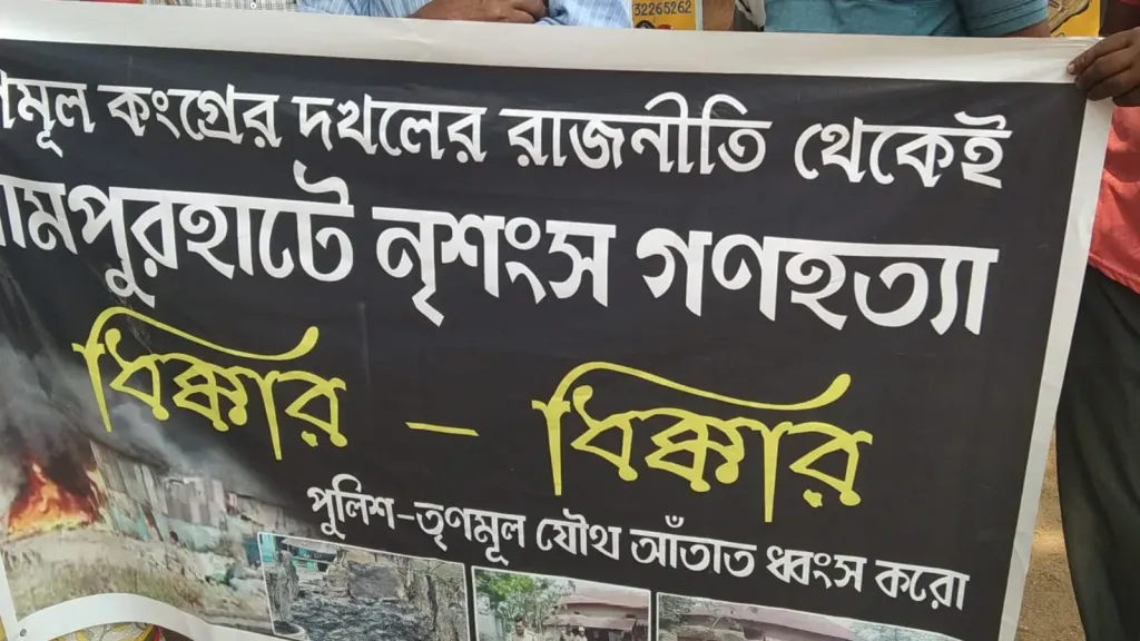 সেখ রিয়াজুদ্দিন, বীরভূম: সম্প্রতি রামপুরহাটে ঘটে যাওয়া খুন এবং অগ্নিসংযোগ করে পুড়িয়ে মারার ঘটনার প্রতিবাদে শুক্রবার খয়রাশোলে বামফ্রন্টের পক্ষ থেকে ধিক্কার মিছিল বের হয়। তৃনমূল কংগ্রেসের দখলের রাজনীতি থেকেই রামপুরহাটে নৃশংস গণহত্যা, পুলিশ ও তৃনমূল কংগ্রেসের যৌথ আঁতাত বন্ধ করা এবং খুনিদের উপযুক্ত শাস্তির দাবি তোলা হয় মিছিল থেকে।