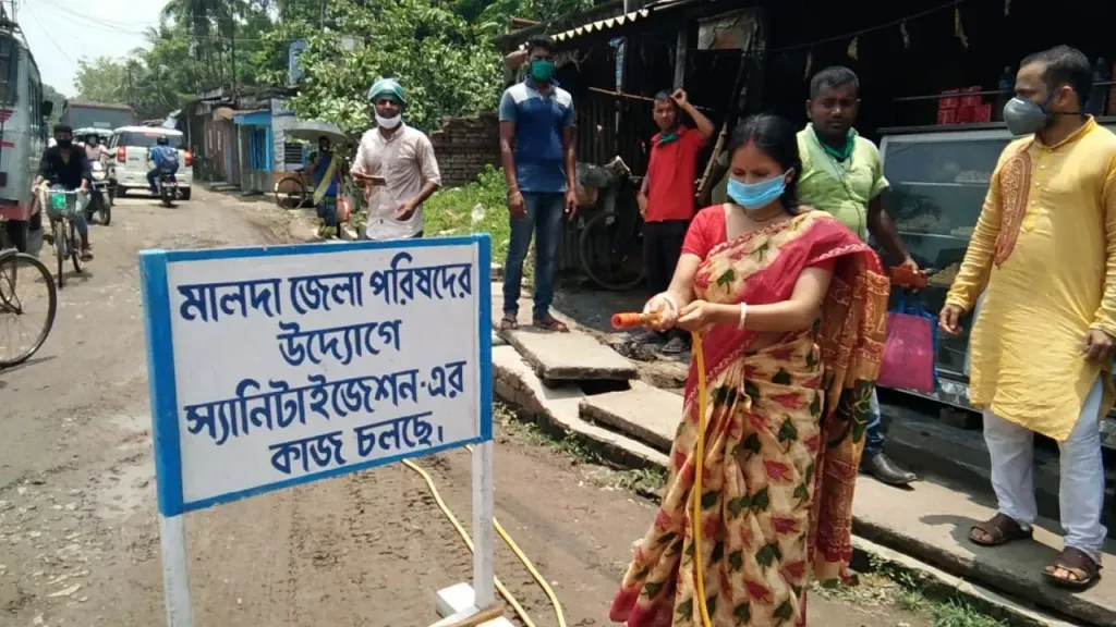 হবিবপুর ব্লকের বিভিন্ন এলাকা জেলা পরিষদ সদস্যের উদ্যোগে স্যানিটাইজ করা হল
