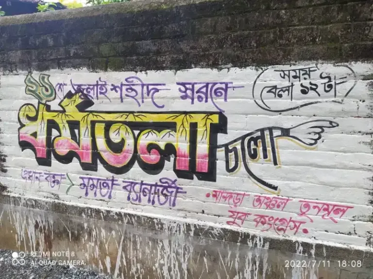 “”এই স্লোগানে উদ্বুদ্ধ হয়ে আগামী একুশে জুলাই শহীদ দিবস উপলক্ষে শহীদ স্মরণের প্রচারে দেওয়াল লিখন সম্পন্ন করা হলো মান্দাড়া অঞ্চল তৃণমূল যুব কংগ্রেসের উদ্যোগে।
