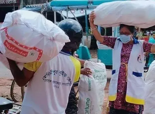 নিজস্ব সংবাদদাতা, মেদিনীপুর: সাম্প্রতিক বন্যায় প্লাবিত হয়েছে দুই মেদিনীপুর জেলার বিভিন্ন ব্লক। নিজেদের সাধ্যমতো এইসব এলাকার বেশকিছু মানুষের পাশে দাঁড়াতে এগিয়ে এলো মেদিনীপুর কুইজ কেন্দ্র সোশ্যাল ওয়েলফেয়ার সোসাইটি। শুক্রবার সংগঠনের উদ্যোগে ত্রাণ বিতরণ করা হলো পশ্চিম মেদিনীপুরের সবং এবং পূর্ব মেদিনীপুরের ভগবানপুর-১ ব্লকের বেশ কিছু এলাকায়। এদিন সকালে সংস্থার উদ্যোগে এবং কলকাতার পথের সাথী’র সহযোগিতায় সবং ব্লকের বন্যা কবলিত বীরকোটা, খড়িকা, খোলাগেড়িয়া,আন্দুলিয়া-১,আন্দুলিয়া-২ এলাকার ৫ টি গ্রামের ১৯১টি পরিবারের হাতে নিত্যপ্রয়োজনীয় ত্রাণ সামগ্রী তুলে দেওয়া হয়। পাশাপাশি এদিন সংগঠনের সদস্যদের অপর একটি দলের পক্ষ থেকে পূর্ব মেদিনীপুর জেলার ভগবানপুর-১ ব্লকের বিভীষণপুর এলাকার সুন্দরী পুকুরপাড় ও ভেড়ির বাজার গ্রামের ৮০ টি চূড়ান্ত বিধ্বস্ত পরিবারের হাতে প্রয়োজনীয় ত্রাণ সামগ্রী তুলে দেওয়া হয়।