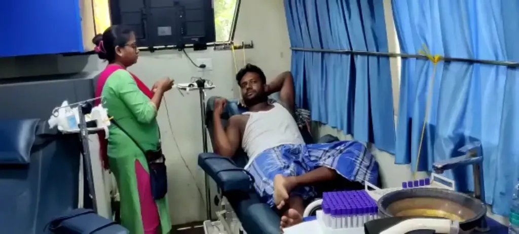 নিজস্ব সংবাদদাতা:- মঙ্গলবার সিউড়ি থানার বাঁশজোর গ্রামে সাথী সমিতি ক্লাবের উদ্যোগেএবং বীরভূম ভলেন্টারি ব্লাড ডোনার্স এ্যাসোসিয়েশন এর সহযোগিতায় একটি ভ্রাম্যমান রক্তদান শিবির অনুষ্ঠিত হয়। উল্লেখ্য আজকের রক্তদান শিবিরে বেশিরভাগ রক্তদাতা জীবনে প্রথম রক্তদান করাই তাদের চোখে মুখে উৎসাহ উদ্দীপনা ছিল চোখে পড়ার মতো। এদিনের রক্তদান শিবিরে গ্রাম্য বধূরা ও রক্তদান করাই সকলের নজর কাড়ে, তথা রক্তদান আন্দোলন যে গ্রামীণ এলাকায় এবং যুবসমাজ সহ মহিলা মহলে রেখাপাত করেছে, আজকের ঘটনার পরিপ্রেক্ষিতে বলা যেতেই পারে বলে সংগঠনের দাবি। শিবিরে সকল রক্তদাতা কে স্বাস্থ্য দপ্তরের পক্ষ থেকে শংসাপত্র এবং ক্লাবের পক্ষ থেকে পদক দিয়ে সম্মাননা জ্ঞাপন করা হয়।।উক্ত শিবিরে উপস্থিত ছিলেন বীরভূম ভলেন্টারি ব্লাড ডোনার্স এ্যাসোসিয়েশনের বীরভূম জেলার সহ সভাপতি প্রিয়নীল পাল,সাধারণ সদস্য মোশারফ হোসেন,সেখ জিয়ারুল,সেখ আব্দুল্লা প্রমুখ।রক্ত সংকট দূরীকরণে স্থানীয় ক্লাবের পক্ষ ঘোষণা করা হয় যে এবার থেকে রক্তদান শিবির তারা নিয়মিত ভাবে আয়োজন করবেন।