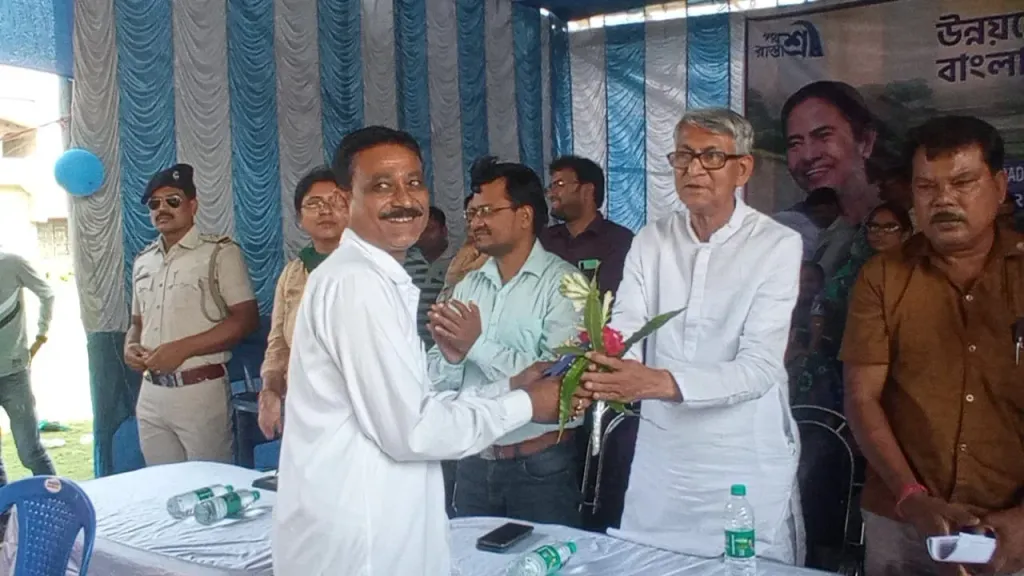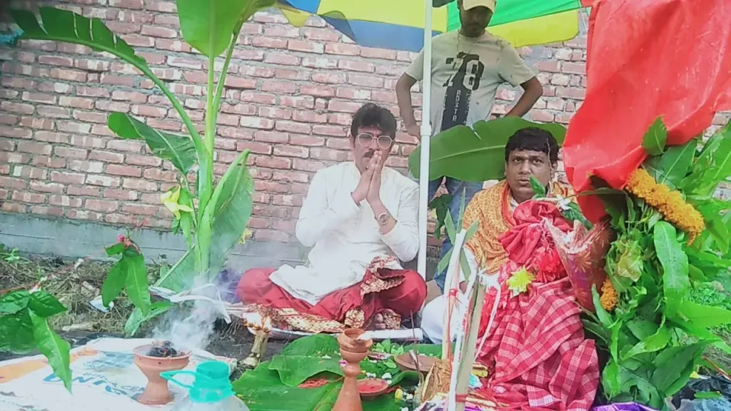 নিজস্ব সংবাদদাতা: আর মাত্র কয়েকদিন পর বাংলার আকাশে বাতাসে বেজে উঠবে আগমনীর শুর তার আগে থেকে প্রস্তুতি শুরু হলো শারদীয় দূর্গা উৎসবের জন্য বুধবার মেঘলা দিনে সঙ্গে সকাল থেকে কখনও ভারি কখন ঝিরি ঝিরি বৃষ্টির মধ্যে দূর্গা উৎসবের খুঁটি পূজা করলো ডায়মন্ড হারবার ২নং ব্লকের নবারুণ সংঘের সদস্যরা। নবারুণ সংঘের খুঁটি পূজায় অংশগ্রহন করে নবারুণ সংঘের সভাপতি এবং ডায়মন্ড হারবার ২নং ব্লক তৃণমূল কংগ্রেসের সভাপতি অরুময় গায়েন সহ নবারুণ সংঘের সদস্যরা।