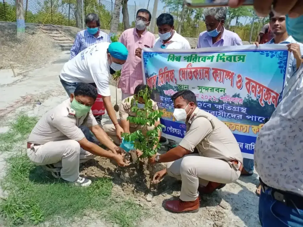 বাবলু হাসান লস্কর দক্ষিণ চব্বিশ পরগনা: জয়নগর কোভিদ সচেতনতা কমিটির পক্ষ থেকে ক্ষতিগ্রস্ত সুন্দরবনের প্রত্যন্ত অঞ্চল কুলতলী ফরেস্ট বিটে বৃক্ষরোপণ করলেন। এই বৃক্ষ রোপণ এর মধ্য দিয়েই, গাছ লাগিয়ে প্রাণ বাঁচানোর অঙ্গীকার নিয়ে আজ স্বেচ্ছাসেবী সংগঠনের কর্মকর্তারা নীরলস পরিশ্রমের মাধ্যমে ।একদিকে মেডিকেল ক্যাম্প, অপরদিকে দুঃস্থ মানুষদের ত্রাণ সামগ্রী এবং বৃক্ষ রোপনের মাধ্যমে কর্মসূচির সমাপ্ত করেন। প্রাকৃতিক ভারসাম্য যেভাবে বিনষ্ট হচ্ছে আজ বিশ্ব পরিবেশ দিবসের অঙ্গীকার নিয়ে এই সংগঠনের এই মুহূর্তে কর্মসূচি ।