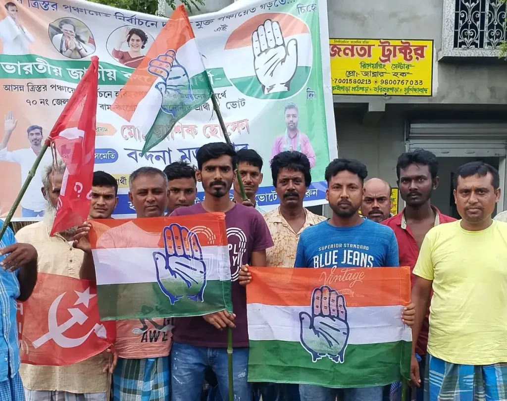 জানা যায় , বুধবার পঞ্চায়েত নির্বাচনে কংগ্রেস প্রার্থীদের সমর্থনে মুর্শিদাবাদের হরিহরপাড়া ব্লকের খিদিরপুর অঞ্চলের 70 নম্বর জেলা পরিষদের বাম কংগ্রেস সমর্থিত প্রার্থী মোঃ আশিক হোসেন , 13 নম্বর পঞ্চায়েত সমিতির প্রার্থী বন্দনা কাঞ্জিলাল ও 144 নম্বর গ্রাম পঞ্চায়েতের প্রার্থী ঝন্টু সেখ সহ প্রার্থীদের সমর্থনে বাম কংগ্রেসের পক্ষ থেকে একটি পদযাত্রার আয়োজন করা হয়।
