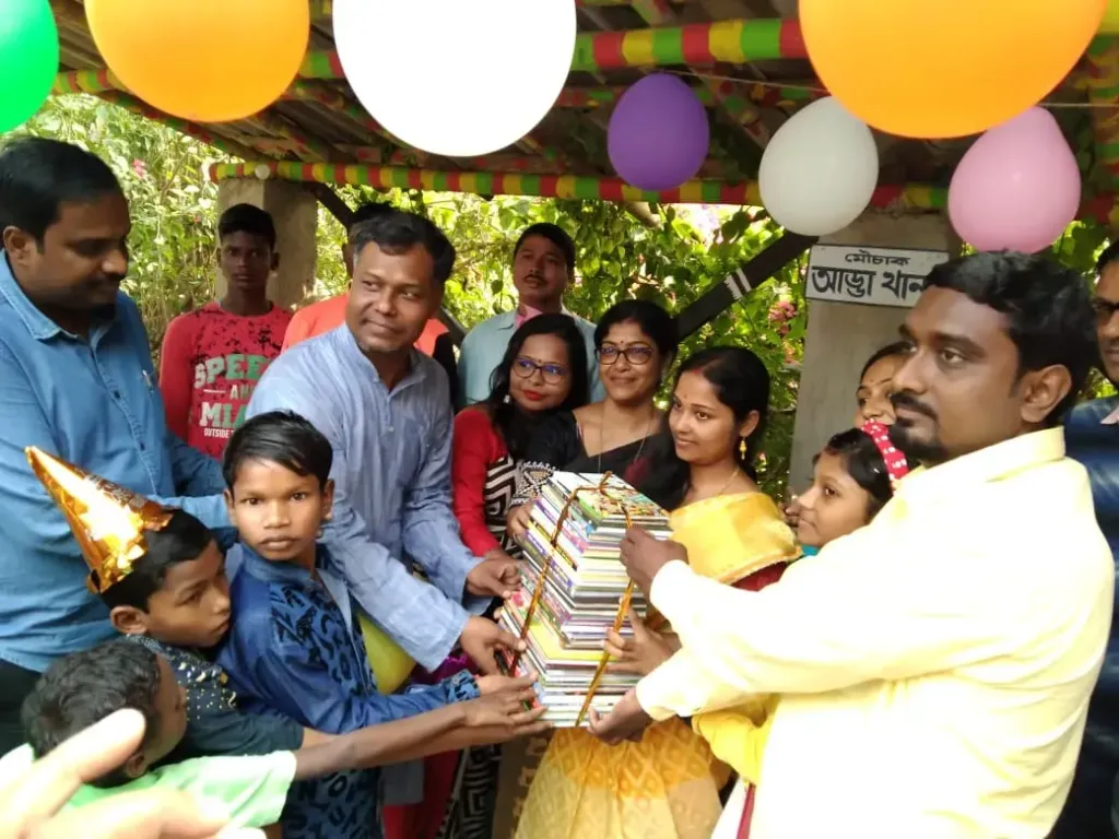 নিজস্ব সংবাদদাতা, নতুন গতি, পাঁশকুড়া: ব্যতিক্রমীভাবে পালিত হলো জন্মদিনের উৎসব। বুধবার নিজের ১১তম জন্মদিনের আনন্দ অনাথ আশ্রমের শিশুদের শিশুদের সাথে ভাগ করে নিল পূর্ব মেদিনীপুর জেলার পাঁশকুড়া পুরসভার ৭নং ওয়ার্ডের কনকপুরের বাসিন্দা পাউলি মাইতি।রাধাবল্লভচক সারদাময়ী বিদ্যাপীঠের রসায়নের শিক্ষক আলোক মাইতি ও তাঁর স্ত্রী গৃহবধূ ঝুম্পা মাইতির ইচ্ছে ছিল মেয়ে পাউলির ১১ তম জন্মদিনটা একটু অন্যভাবে পালন করার।এই কাজে আলোকবাবুর সাথে পেয়ে যান স্বেচ্ছাসেবী সংগঠন মেদিনীপুর কুইজ কেন্দ্র সোশ্যাল ওয়েলফেয়ার সোসাইটিকে।আলোকবাবু নিজেও কুইজ কেন্দ্রের সদস্য। পরিকল্পনা মতো মাইতি পরিবার ও মেদিনীপুর কুইজ কেন্দ্রের কর্মকর্তা ও সদস্য-সদস্যারা বুধবার সকালে শ্যামসুন্দরপুর পাটনা এলাকার মাংলই গ্রামে “মৌচাক” সেবাশ্রমে। সেখানে জন্মদিনের উৎসব উপলক্ষ্যে তাঁরা সারাদিন কাটালেন অনাথ শিশুদের সঙ্গে। এদিন মাইতি পরিবার ও মেদিনীপুর কুইজ কেন্দ্রের উদ্যোগে পাউলির জন্মদিন উপলক্ষ্য একটি বই রাখার খোলা আলমারি, ৩৫টি বই ও প্রয়োজনীয় শিক্ষা সামগ্রী তুলে দেওয়া হলো সেবাশ্রমের অনাথ শিশুদের হাতে।সেবাশ্রমের অনাথ শিশু ও বৃদ্ধদের সাথে একসাথে জন্মদিন উপলক্ষ্যে আয়োজিত মধ্যাহ্নভোজে অংশগ্রহণ করেন মাইতি পরিবার ও কুইজ কেন্দ্রের সদস্য-সদস্যারা।