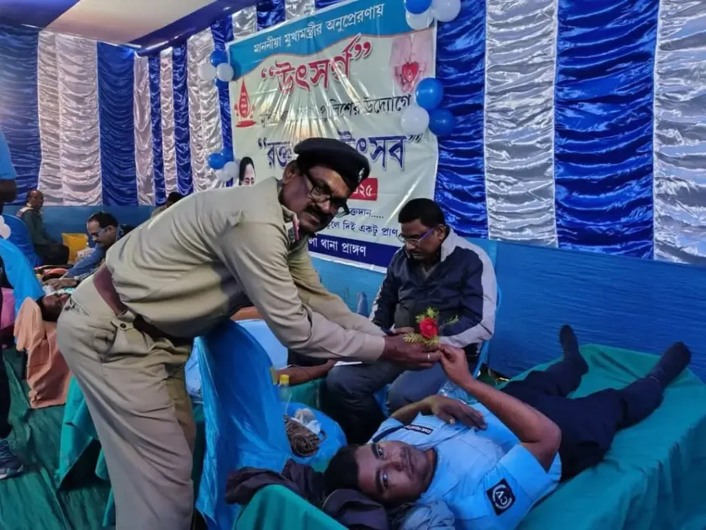 রহমতুল্লাহ, মুর্শিদাবাদ : মুর্শিদাবাদ পুলিশ জেলার ভগবানগোলা থানায় ‘উৎসর্গ’ প্রকল্পের অধীনে স্বেচ্ছা রক্তদান শিবিরের আয়োজন হয়। বৃহস্পতিবার রক্তদানের পাশাপাশি একটি সাইকেল র্যালির আয়োজন করা হয়। উক্ত শিবিরে উপস্থিত ছিলেন এসডিপিও উত্তম গড়াই মহাশয়, সি আই মানস দাস সহ থানার পুলিশ কর্মীবৃন্দ ও এলাকার সন্মানীয় ব্যক্তিবর্গ। উক্ত শিবিরে মোট ৫৪ জন রক্তদান করেন।