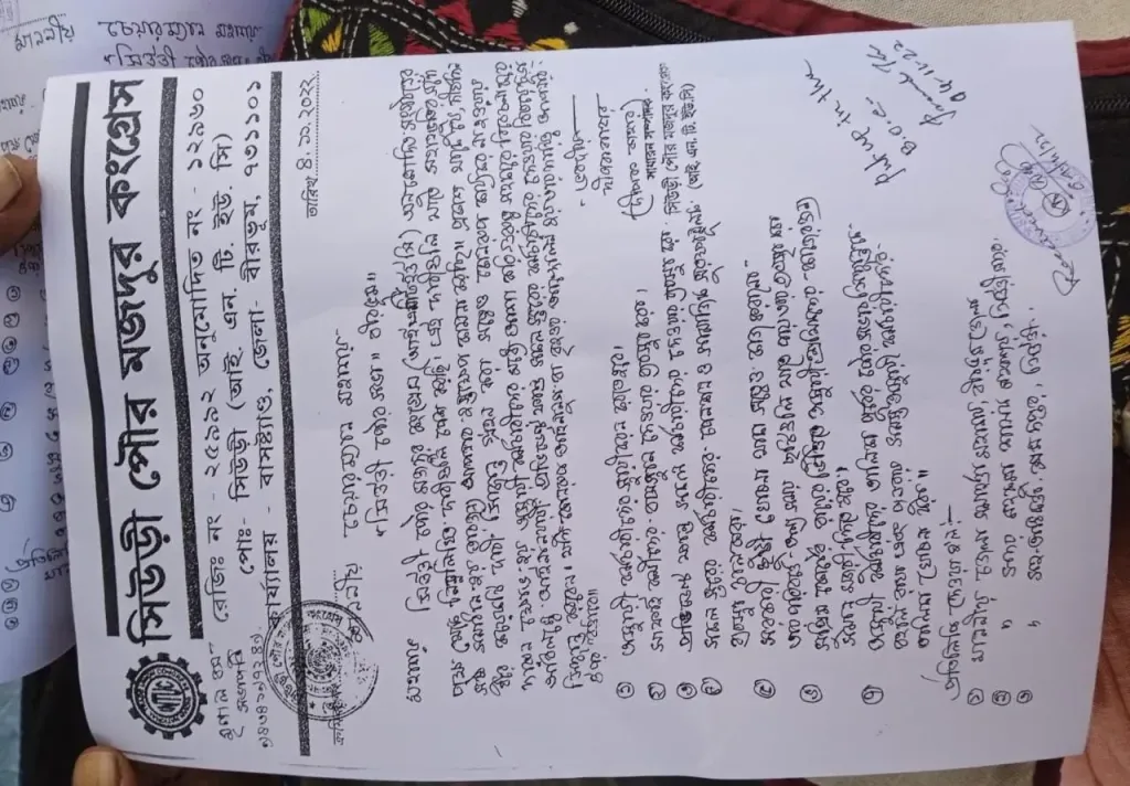 সিউড়ি পৌর মজদূর কংগ্রেসের ডেপুটেশন প্রদান