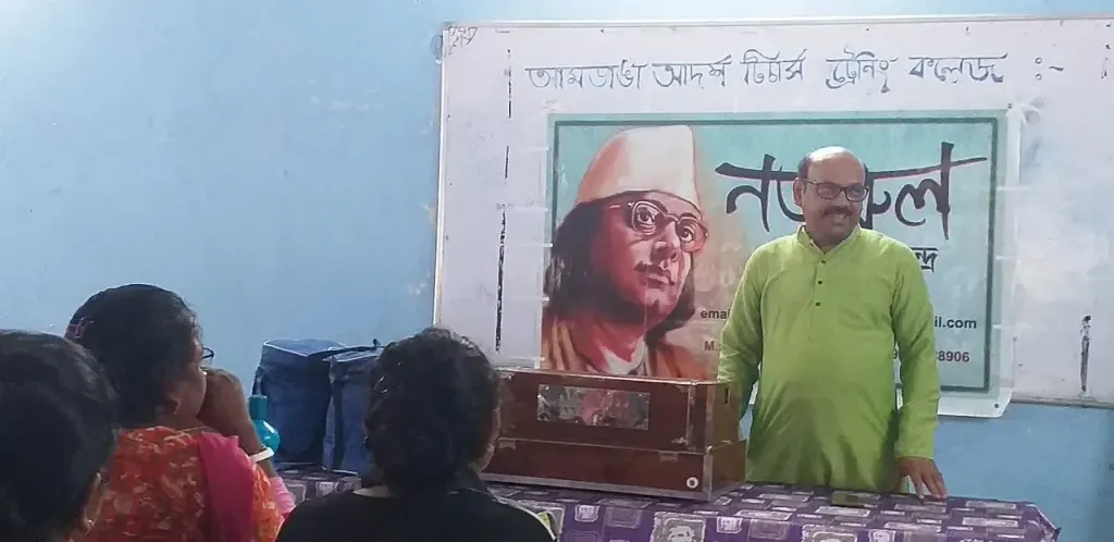 মহঃ মফিজুর রহমান, আমডাঙা, নতুন গতি : ‛এক বৃন্তে দুটি ফুল, রবীন্দ্র নজরুল’। নজরুল চর্চা কেন্দ্রের সভাপতি তথা হিঙ্গলগঞ্জ মহাবিদ্যালয়ের অধ্যক্ষ শেখ কামাল উদ্দীন দুই বাংলার শিল্পীদের নিয়ে একসঙ্গে রবীন্দ্র-নজরুল জন্মজয়ন্তী উদযাপনের প্রয়োজনীয়তার কথা বলতে গিয়ে একথা জানান, বিশেষ করে রবীন্দ্রনাথ ঠাকুর ও কাজী নজরুল ইসলামকে নিয়ে দুই বাংলায় যে সমস্ত বিভ্রান্তি রয়েছে সেগুলিকে দূর করা প্রয়োজন। আজ বিকেল তিনটে পাঁচ মিনিট থেকে ‛আমডাঙ্গা আদর্শ টিচার্স ট্রেনিং কলেজে’ দুই বাংলার শিল্পীসমন্বয়ে রবীন্দ্র-নজরুল জন্ম জয়ন্তী অনুষ্ঠান উদযাপন করা হয় ।