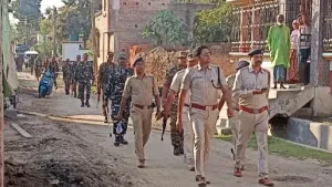 সাঁইথিয়া থানার বিভিন্ন গ্রামে ওসি তন্ময় ঘোষের নেতৃত্বে কেন্দ্রীয় বাহিনীর রুট মার্চ