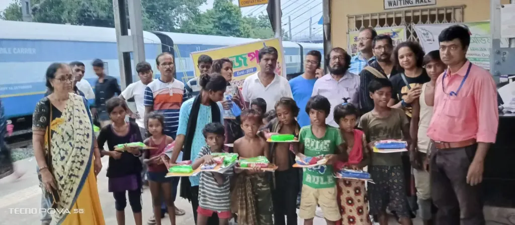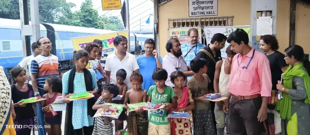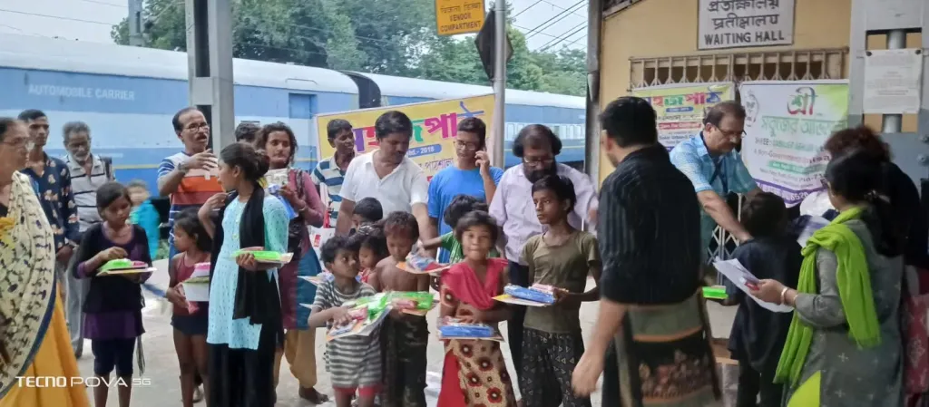 এই দিন ২রা সেপ্টেম্বর ২০২৩ শনিবার বিকালে বর্ধমান রেলওয়ে স্টেশন এলাকার ৪০ জন পথ শিশুদের হাতে তুলে দেওয়া হল খাতা পেন পেন্সিল এবং টিফিন ।