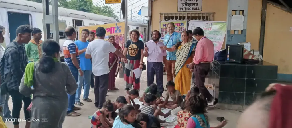 নিজস্ব সংবাদদাতা : বর্ধমান রেলওয়ে স্টেশনের অবহেলিত ভবঘুরে ফুটপাতবাসী শিশুদেরকে মূল স্রোতে ফেরানোর লক্ষ্য নিয়ে তাদের সাময়িক আনন্দদানের জন্য নাচ, গান ও পড়াশোনার শিখন উপকরণ বিতরণের ব্যবস্থা করা হলো।