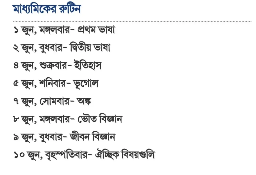 মাধ্যমিক পরীক্ষার সূচি-