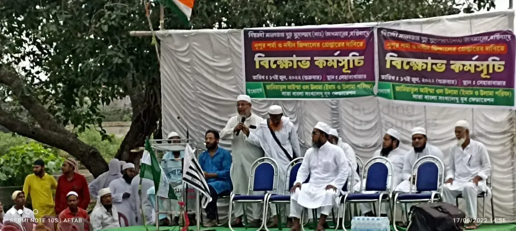 সেহারাবাজারে নবী মোহাম্মদ সা: অপমানের বিরুদ্ধে বিশাল বিক্ষোভ মিছিল