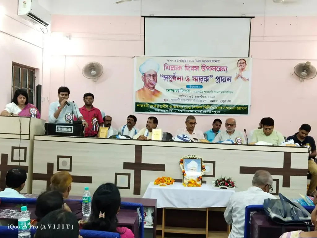 ৬ ই সেপ্টেম্বর,২০২৩:: শালবনী পঞ্চায়েত সমিতির সভাপতি হিসেবে দ্বিতীয় বার সদ্য দায়িত্ব নিয়েছেন নেপাল সিংহ। আর কলকাতার রাজপথে ছাত্র পরিষদের সভায় মমতা বন্দ্যোপাধ্যায়ের বার্তার পর ঠিক করেন, শালবনী ব্লকে অবসরপ্রাপ্ত ও প্রবীণ শিক্ষক শিক্ষিকাদের সম্মাননা জ্ঞাপন করবেন।সেই উপলক্ষে আজ শিক্ষক দিবস উপলক্ষে শালবনী ব্লকে সদ্য দায়িত্ব নেওয়া জেলা পরিষদের সভাধিপতি প্রতিভা মাইতির উপস্থিতিতে প্রায় দেড়শত জন প্রবীণ শিক্ষক শিক্ষিকাদের সম্মাননা প্রদান করা হয়।