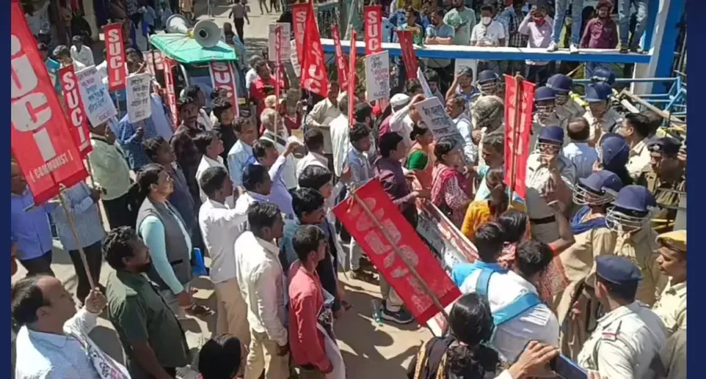 কেন্দ্র ও রাজ্য সরকারের বিভিন্ন জন বিরোধী নীতির প্রতিবাদ করে বীরভূম জেলাশাসকের দপ্তরের সামনে বিক্ষোভ প্রদর্শন করে স্মারকলিপি প্রদান করা হল SUCI এর পক্ষ থেকে।