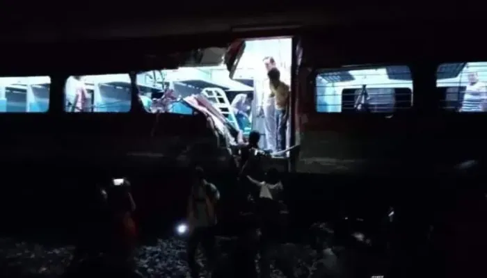ট্রেনটির একাধিক কামরা।মুখোমুখি মালগাড়ির সঙ্গে ধাক্কা লেগেই ট্রেনটির ১৮টি কামরা লাইনচ্যুত হয়েছে বলে জানা গিয়েছে। ঘটনায় বহু যাত্রী আহত ও নিহত।