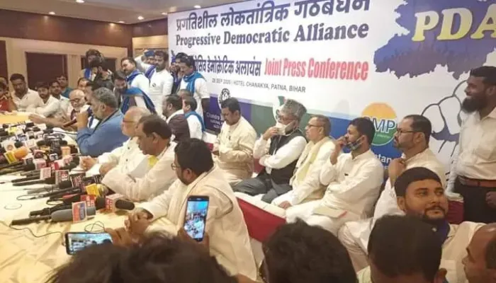 আজকে বিহারের পাটনায় জোটের পক্ষে সাংবাদিক সম্মেলন অনুষ্ঠিত হয়। আজকের এই এই অনুষ্ঠানের মাধ্যমে বিহারে বিধানসভা নির্বাচনের একটি বড় ভূমিকা নিয়ে তৃতীয় জোট তৈরি হলো PDA ( progressive democratic alliance) ।