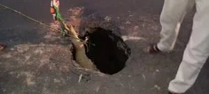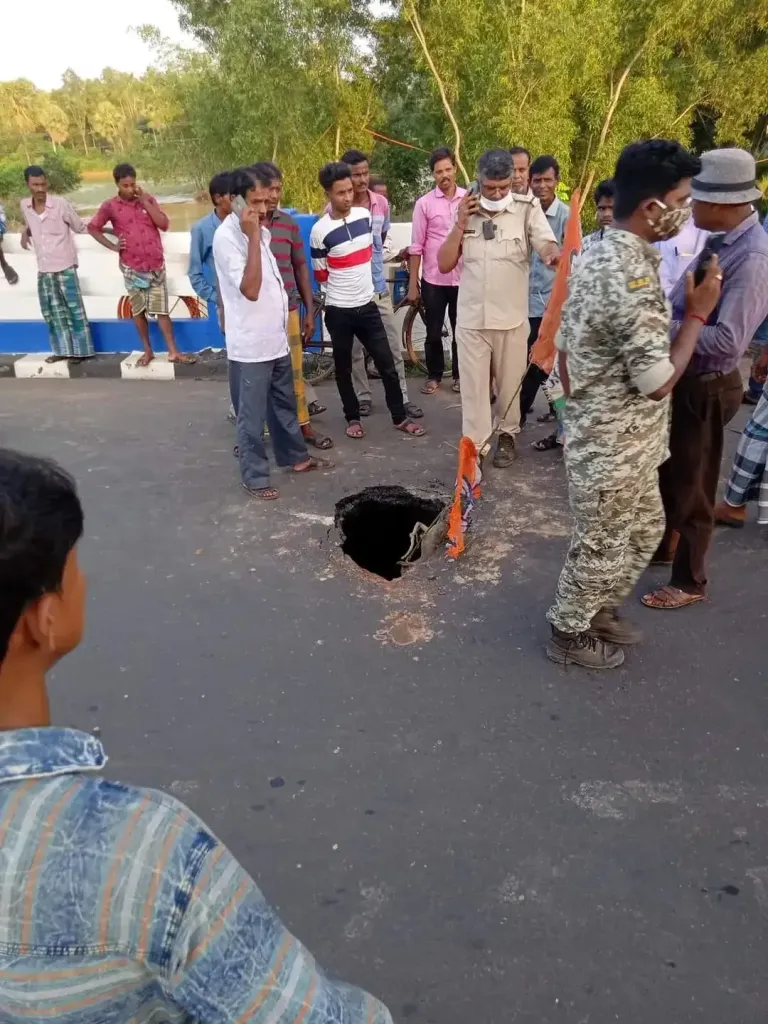 নতুন গতি, কেশপুর: কেশপুরের মুগবসানের পাশ দিয়ে বয়ে যাওয়া কুবাই নদীর ওপর তেমনি ব্রিজের মুখে মেদিনীপুর-চন্দ্রকোনা রাজ্য সড়কের মাঝে শুক্রবার বিকেলে এক বিশাল গর্তের সৃষ্টি হয়েছে । প্রশাসনের পক্ষ থেকে ভারী যানবাহন চলাচল বন্ধ রাখা হয়েছে। যুদ্ধকালীল তৎপরতায় আপদকালীন ভাবে রাস্তা মেরামত করার চেষ্টা চালাচ্ছে পূর্ত দপ্তর।