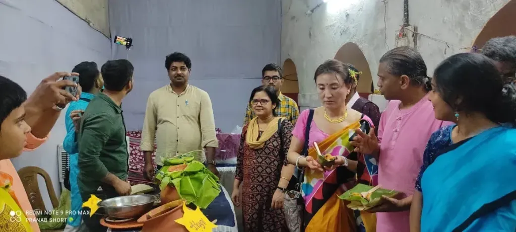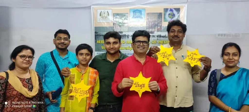 সেই সঙ্গে মেদিনীপুর থেকে গৃহবধূ পায়েল পালের নিজ হাতে গড়া ঘি দিয়ে তৈরি পাটিসাপটা এবং ঘুঘনি পরিবেশন করা হয়। খাবার পরিবেশন করতে মাটির পাত্র সতেজ কলাপাতর প্লেট, সবুজ শালপাতার বাটি ও তালপাতার চামচ ব্যবহার করা হয়। ইউনেস্কোর ভাইস প্রেসিডেন্ট বলেন, এই ধরনের গ্রীন ও সুস্বাদু খাবার খেয়ে তাঁরা সবাই খুশি। রাজপরিবারের সদস্য তথা তাম্রলিপ্ত পুরসভার চেয়ারম্যান ড. দীপেন্দ্রনারায়ন রায় ও রাণী মা নন্দিনী দেবী বলেন এই ধরনের মেদিনীপুরের আদি মুখরোচক ও সুস্বাদু খাওয়ার আমাদের এই অনুষ্ঠানে এক বিশেষ ভূমিকা পালন করে। সংস্থার সম্পাদক অধ্যাপক প্রণব সাহু বলেন আমাদের চিরাচরিত এবং ঐতিহ্যবাহী খাবার গুলি বিশুদ্ধ, সুস্বাদু ও স্বাস্থ্য সম্মত ভাবে বিদেশী ও দেশীয় প্রতিনিধিদের সামনে তুলে ধরা এবং পরিবেশন করাই আমাদের একমাত্র লক্ষ্য।